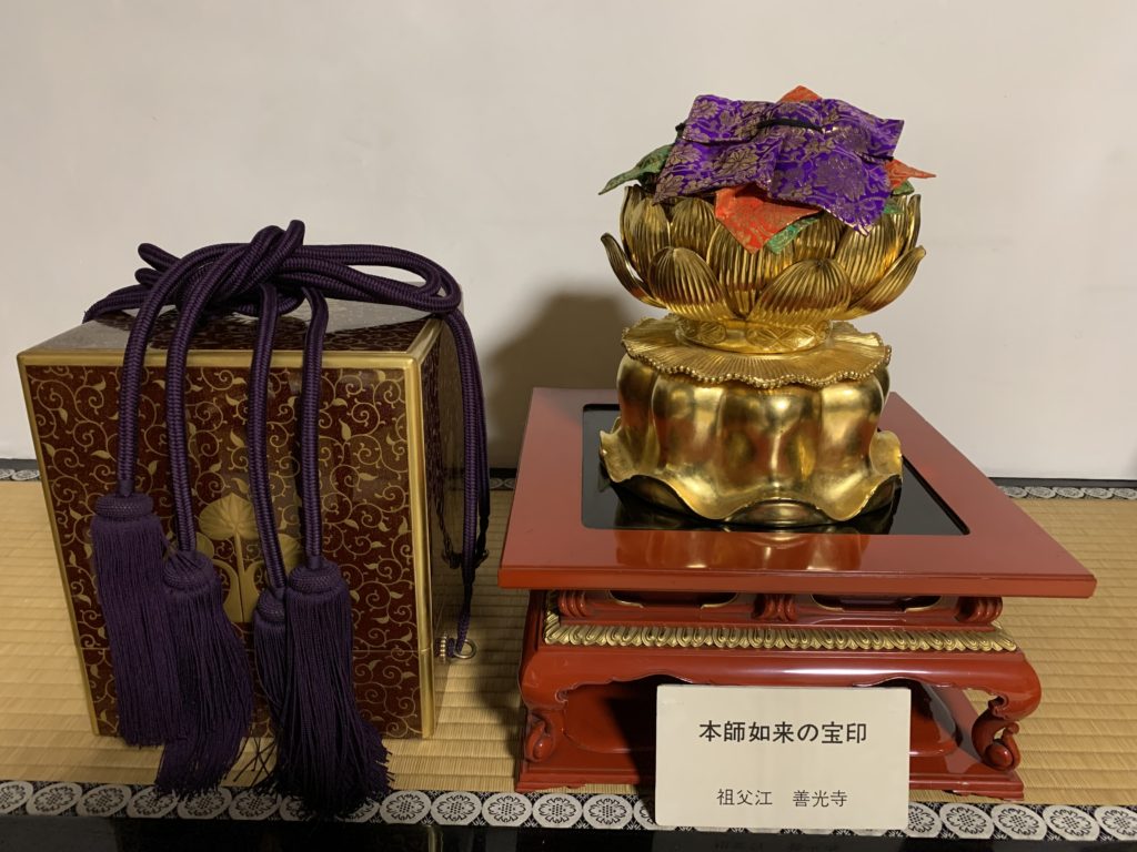 来春の御開帳でお授け致します。本師如来の宝印、通称「ご印文」です。仏様のご分身と言われるこの判を押し頂く事で「極楽往生」のご利益が頂けます。 -