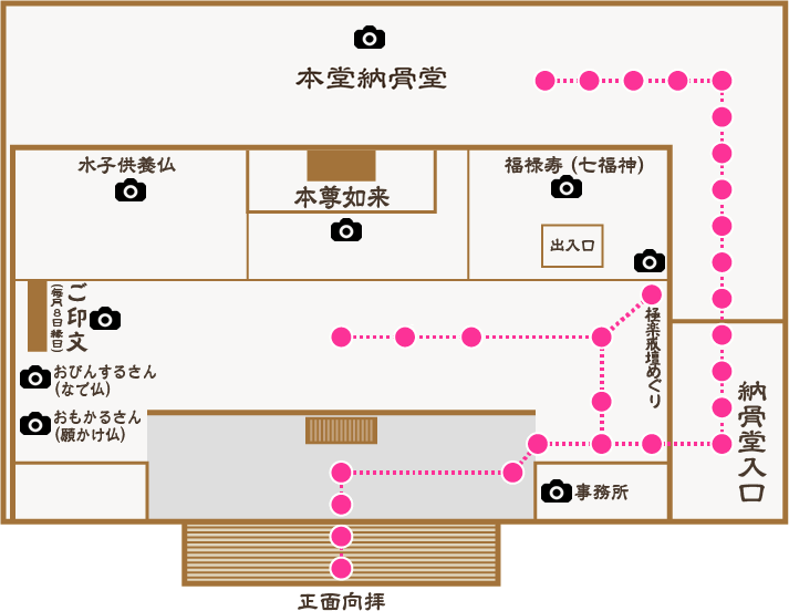 戒壇めぐり、ご朱印、お守り、おじゅず、供養、祈願、納骨永代供養、家族葬などの総合受付所。